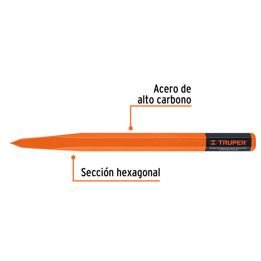 Fabricada en acero alto carbono con tratamiento térmico diferenciado en punta y cabeza