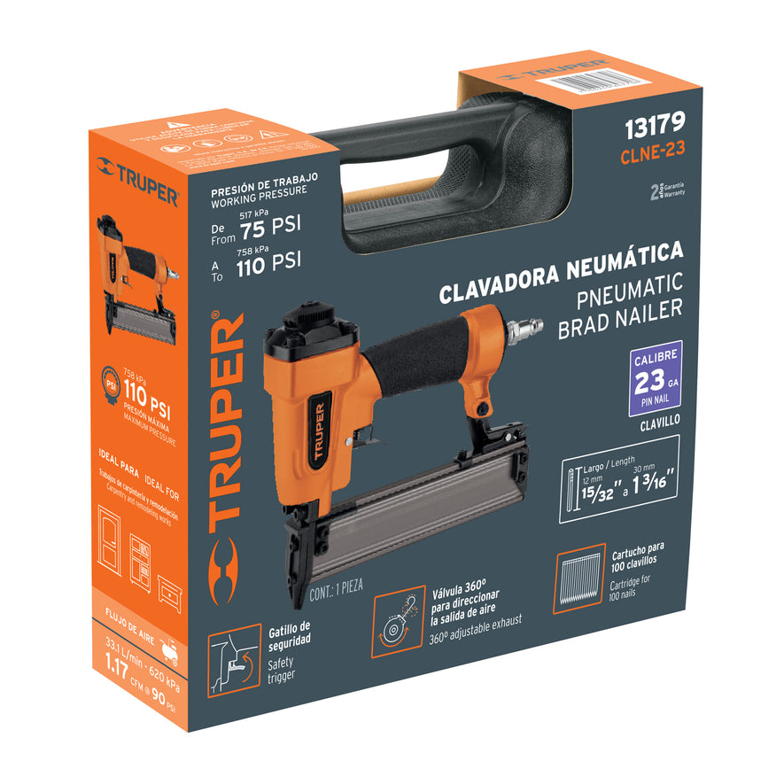 Utiliza clavos calibre 23 de 15/32", 19/32", 23/32", 3/4", 7/8", 1", 1 3/16"