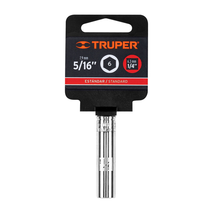 Dado largo de 5/16', 6 puntas, cuadro 1/4', Truper Caja con 6, 13184