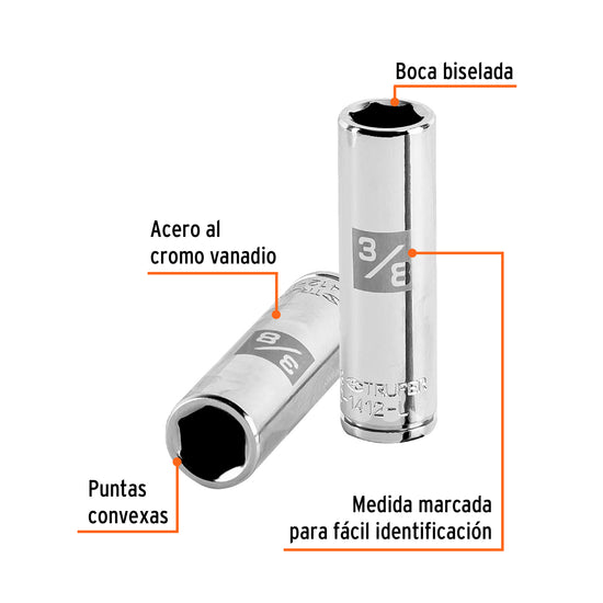 Dado largo de 3/8', 6 puntas, cuadro 1/4', Truper Caja con 6, 13186