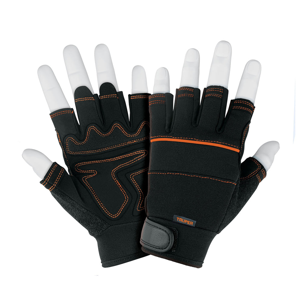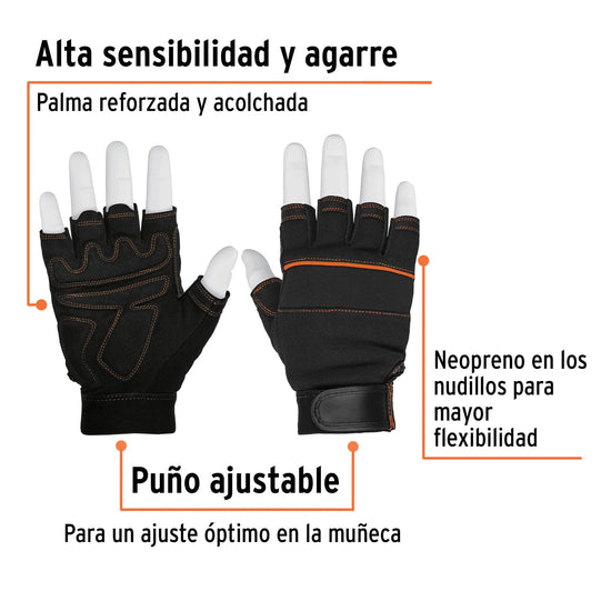 - Palma acolchada antivibración, de carnaza sintética y dorso de poliéster transpirable y poliuretano