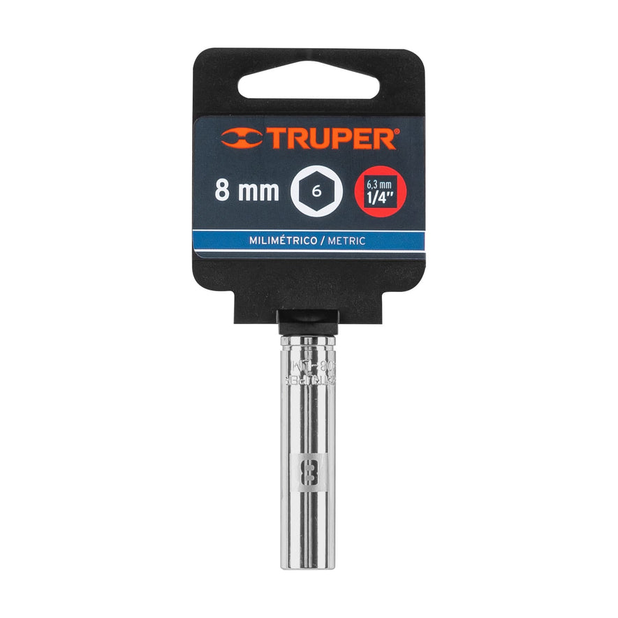 Dado largo de 8 mm, 6 puntas, cuadro 1/4', Truper Caja con 6, 13202