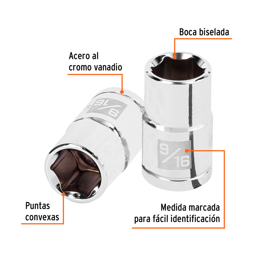 Dado de 9/16', 6 puntas, cuadro 1/2', Truper Caja con 6, 13233
