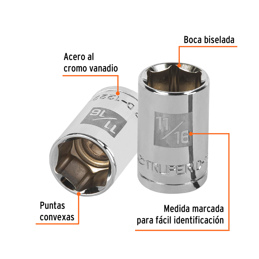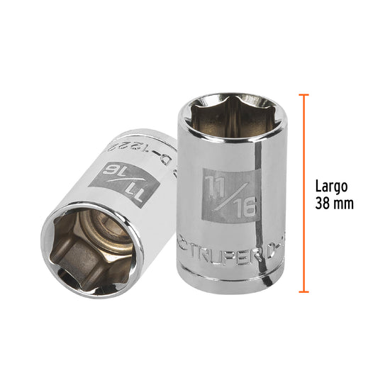 Dado de 11/16', 6 puntas, cuadro 1/2', Truper Caja con 6, 13235