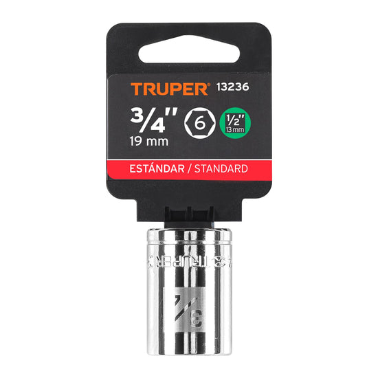 Dado de 3/4', 6 puntas, cuadro 1/2', Truper Caja con 6, 13236