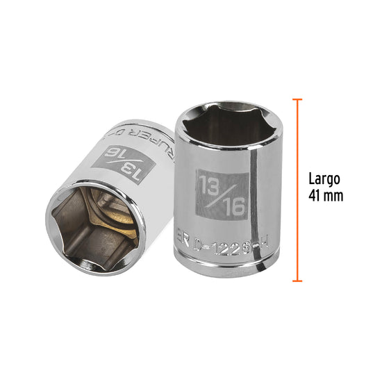 Dado de 13/16', 6 puntas, cuadro 1/2', Truper Caja con 6, 13237