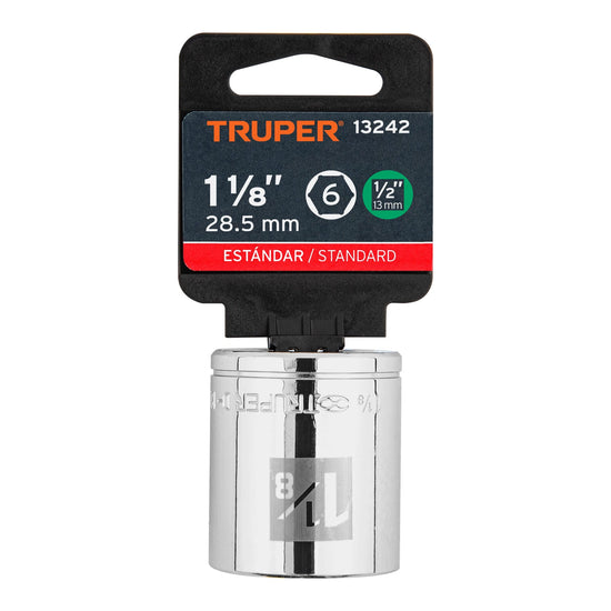 Dado de 1-1/8', 6 puntas, cuadro 1/2', Truper Caja con 6, 13242