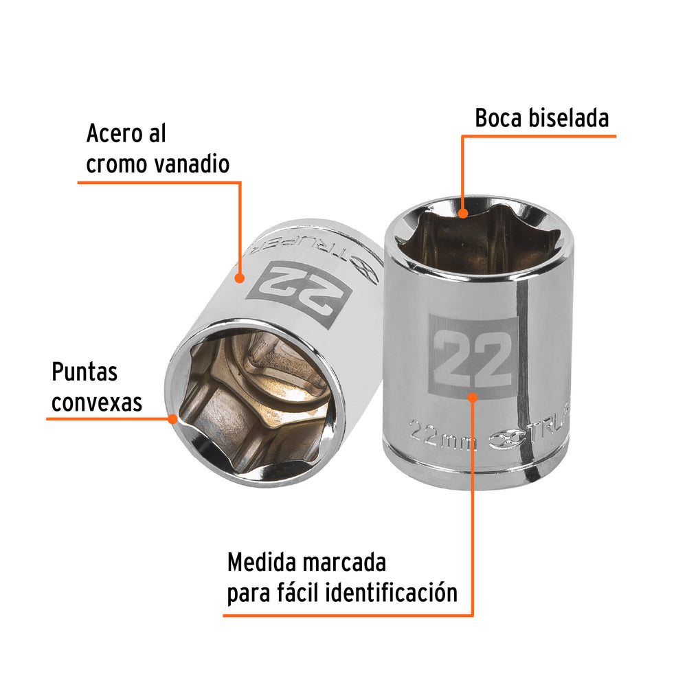 Dado de 22 mm, 6 puntas, cuadro 1/2', Truper Caja con 6, 13272