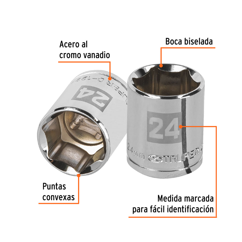 Dado de 24 mm, 6 puntas, cuadro 1/2', Truper Caja con 6, 13274