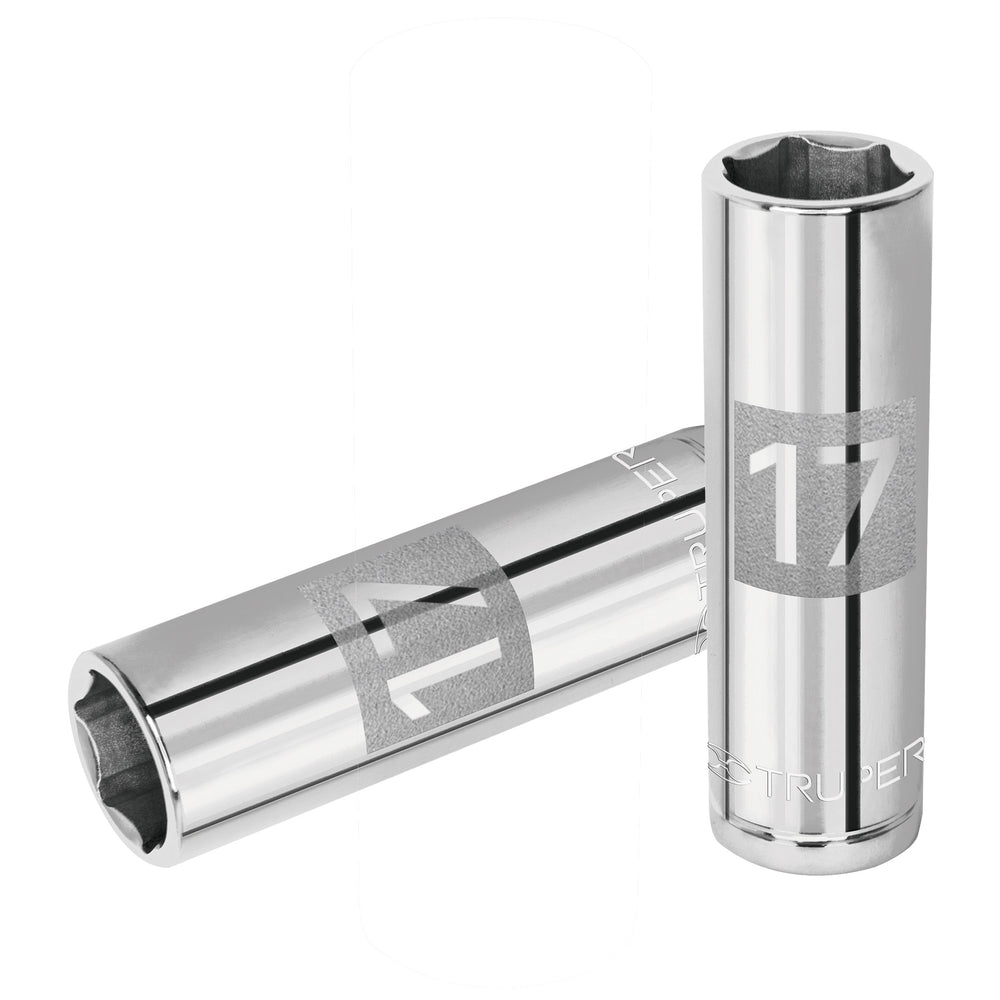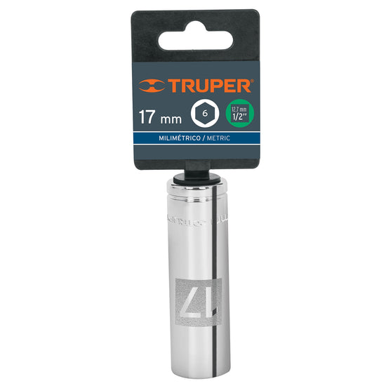 Dado largo de 17 mm, 6 puntas, cuadro 1/2', Truper Caja con 6, 13357