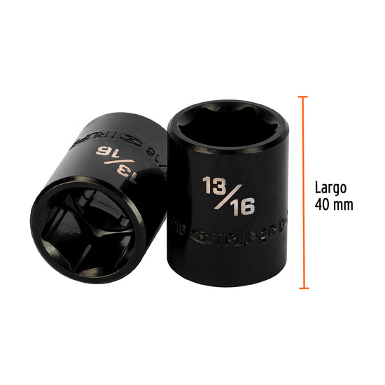 Dado de impacto de 13/16', 6 puntas, cuadro 1/2', Truper Caja con 6, 13382
