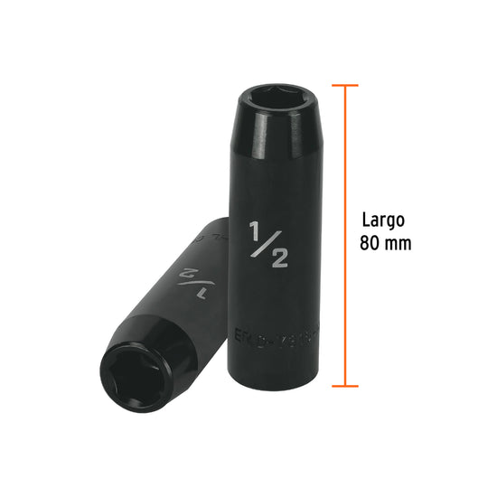 Dado largo impacto de 1/2', 6 puntas, cuadro 1/2', Truper Caja con 6, 13388