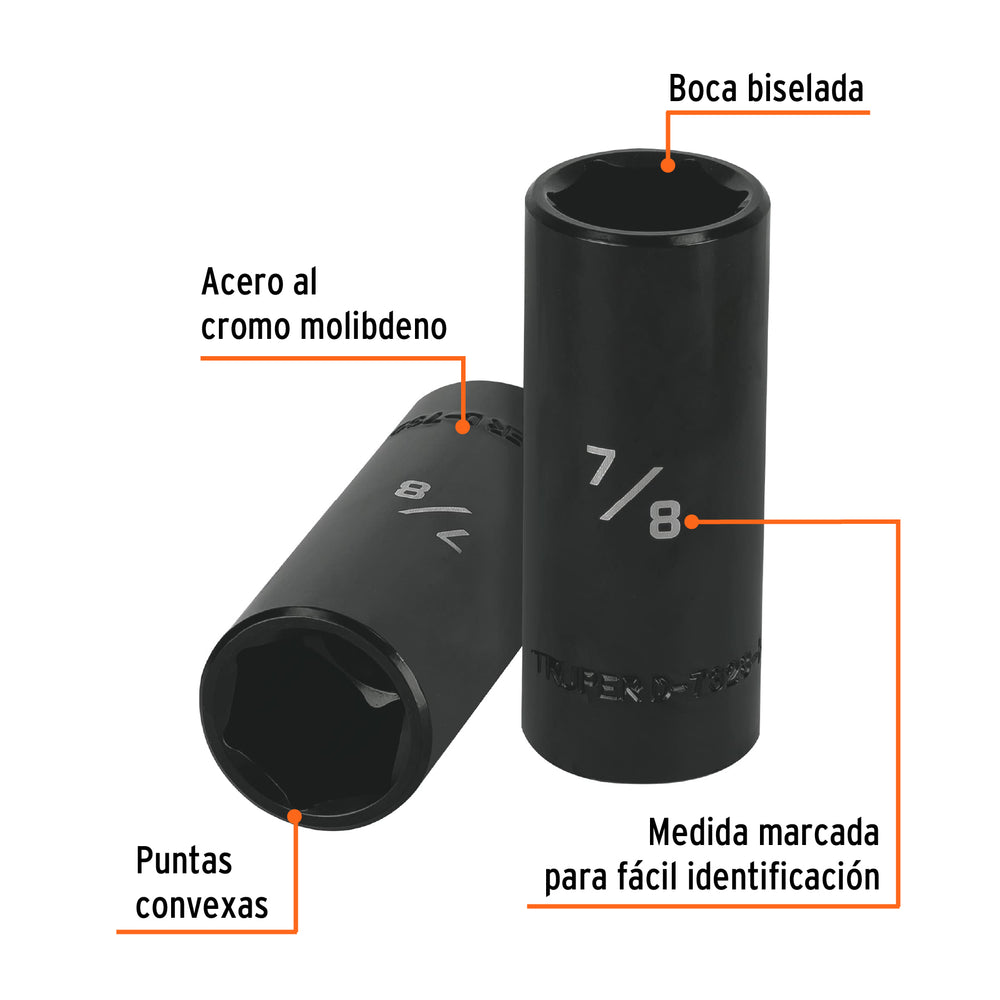 Dado largo impacto de 7/8', 6 puntas, cuadro 1/2', Truper Caja con 6, 13394