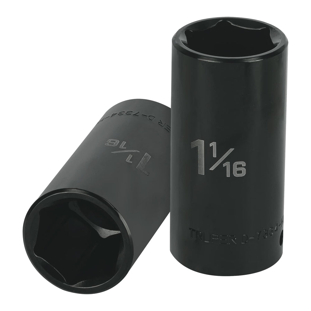 Dado largo impacto de 1-1/16', 6 puntas, cuadro 1/2',Truper Caja con 6, 13400