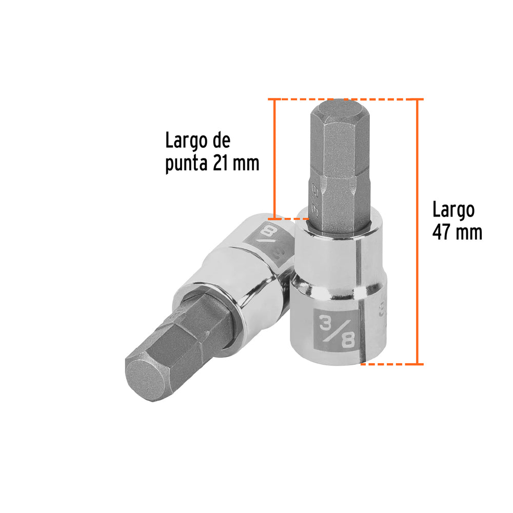 Dado punta hexagonal de 3/8', cuadro 3/8', Truper Caja con 6, 13467