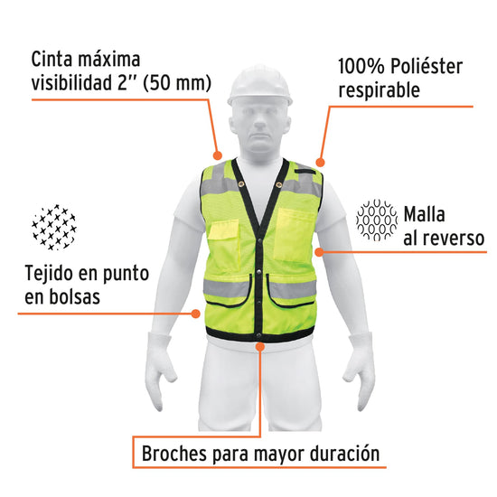 Chaleco seguridad reforzado verde con bolsas, XG, Expert Caja con 5, 13484