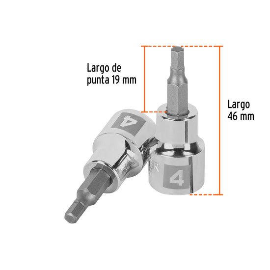 Dado punta hexagonal de 4 mm, cuadro 3/8', Truper Caja con 6, 13485
