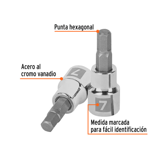 Dado punta hexagonal de 7 mm, cuadro 3/8', Truper Caja con 6, 13488