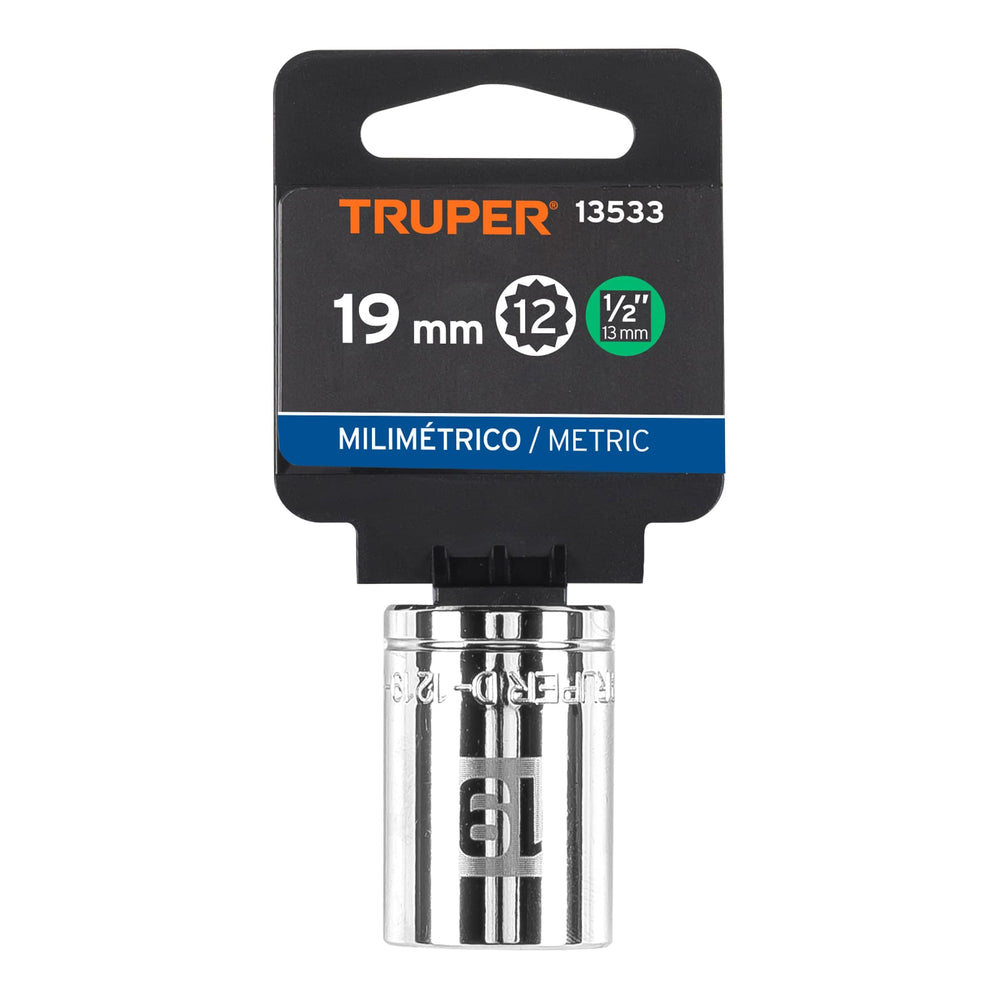 Dado de 19 mm, 12 puntas, cuadro 1/2', Truper Caja con 6, 13533