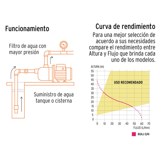 - Diseñada para bombear agua limpia a una presión constante