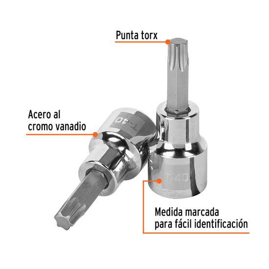 Dado punta torx T-40, cuadro 3/8', Truper Caja con 6, 13574