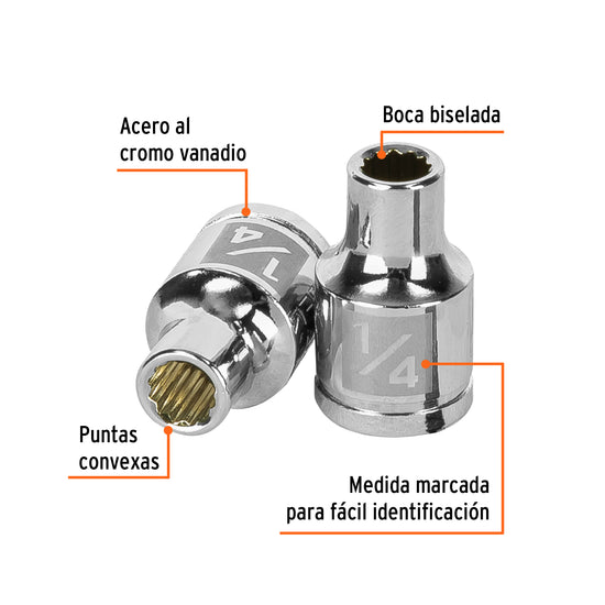 Dado de 1/4', 12 puntas, cuadro 3/8', Truper Caja con 6, 13580