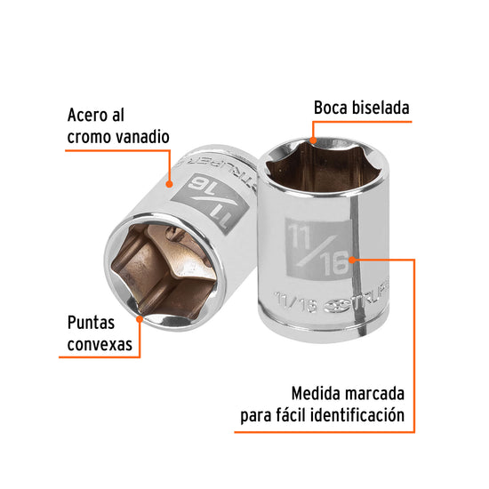 Dado de 11/16', 6 puntas, cuadro 3/8', Truper Caja con 6, 13612