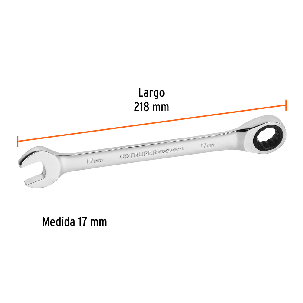 Llave combinada con matraca 17 mm x 218 mm largo, Expert Caja con 3, 13622