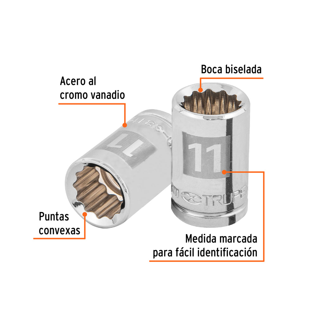 Dado de 11 mm, 12 puntas, cuadro 3/8', Truper Caja con 6, 13631