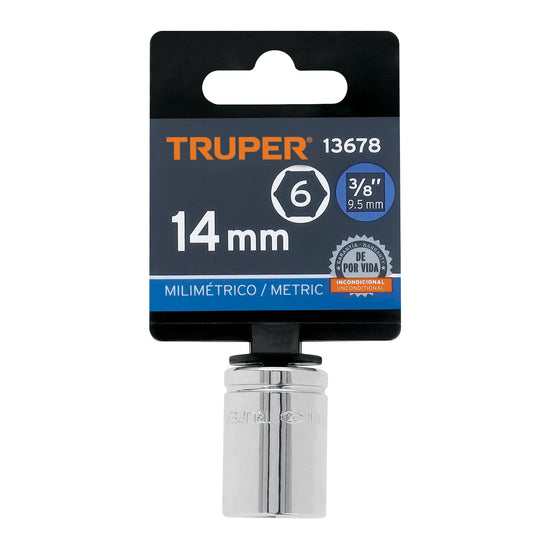 Dado de 14 mm, 6 puntas, cuadro 3/8', Truper Caja con 6, 13678