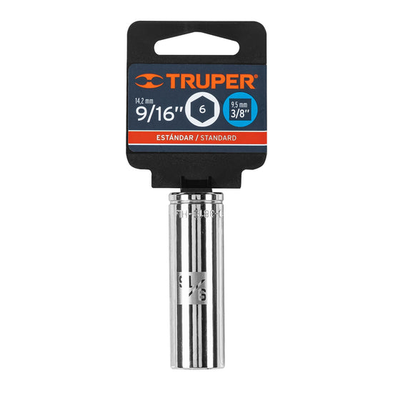 Dado largo de 9/16', 6 puntas, cuadro 3/8', Truper Caja con 6, 13715