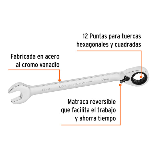 • Matraca reversible que facilita el trabajo y ahorra tiempo