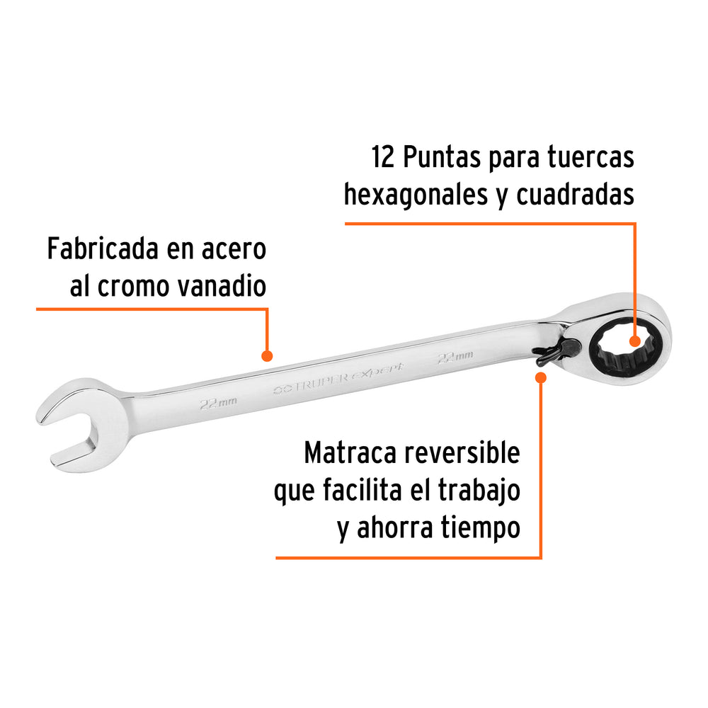 Llave combinada matraca reversible 22mmx288 mm largo, Expert Caja con 3, 13760