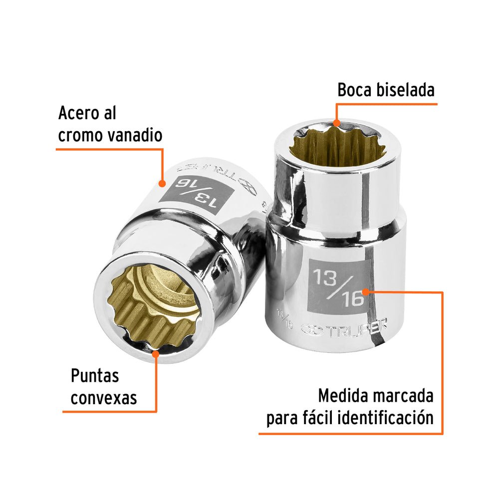 Dado de 13/16', 12 puntas, cuadro 3/4', Truper Caja con 3, 13851