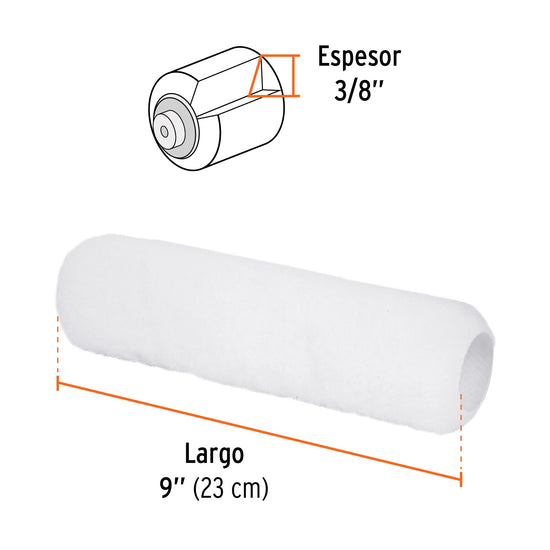 Felpa para rodillo 9' x 3/8' superficies lisas, Truper Caja con 6, 13882