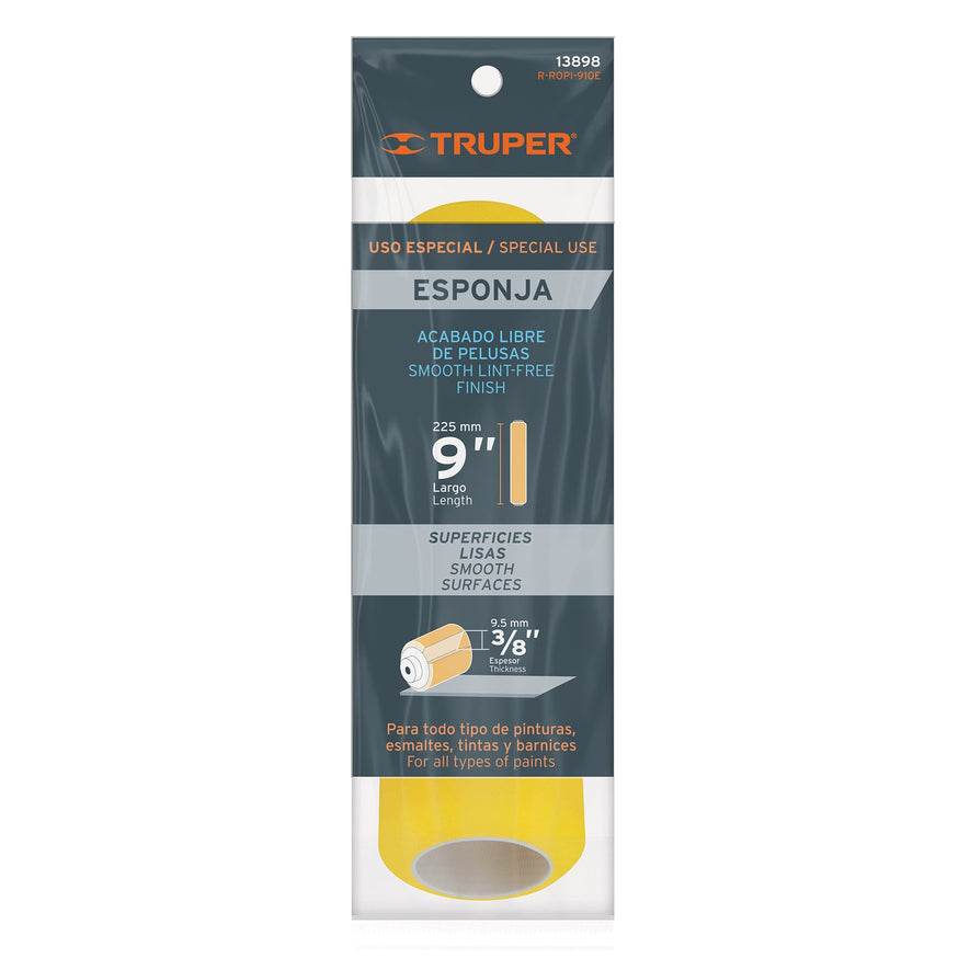 Felpa para rodillo, esponja 9 x 3/8', superficies lisas Caja con 6, 13898