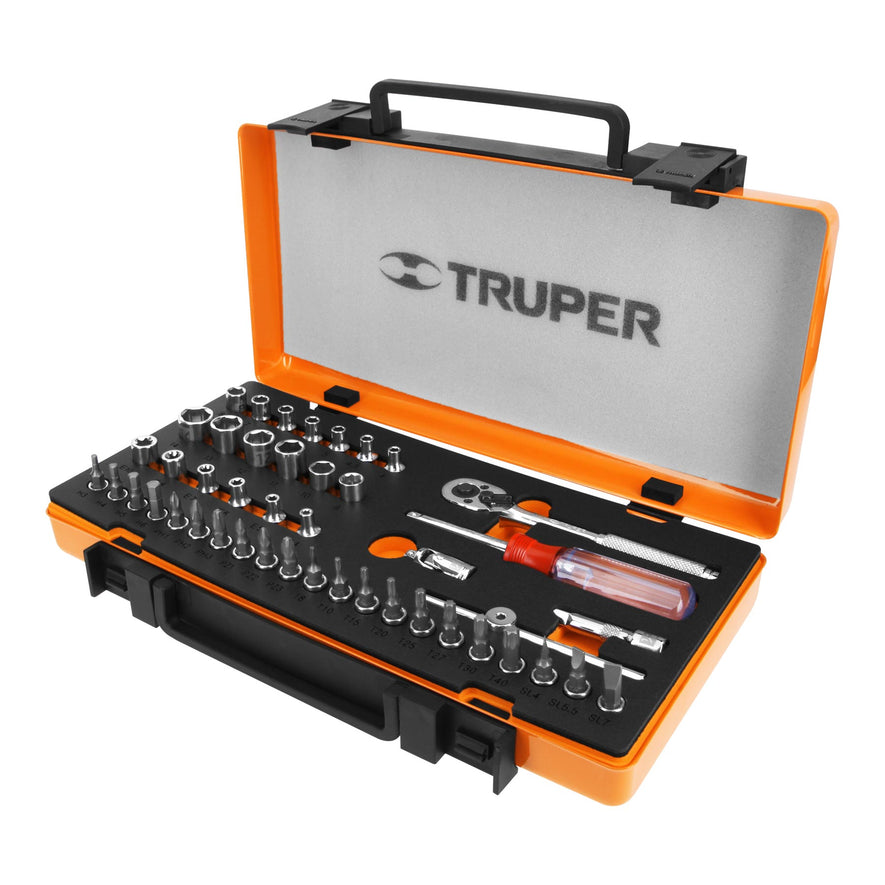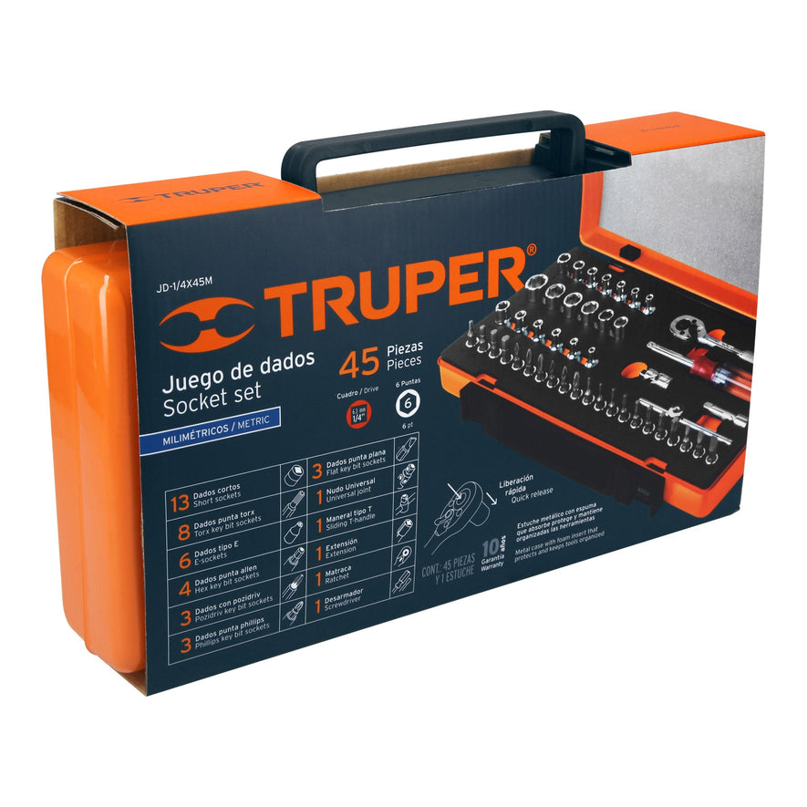 Juego de 45 herramientas cuadro 1/4' mm para mecánico, 13939