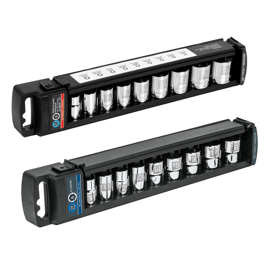 Juego de 9 dados cuadro 3/8' std, Truper Caja con 4, 13950