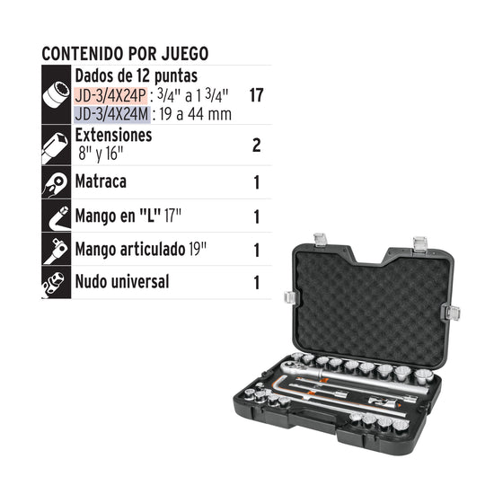 Juego de 23 herramientas cuadro 3/4' std para mecánico, 13970