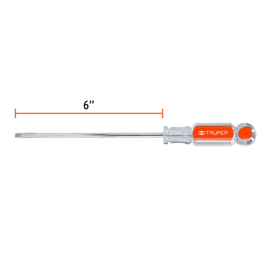 Desarmador cabinet 3/16' x 6' mango de acetato, Truper Caja con 6, 14038