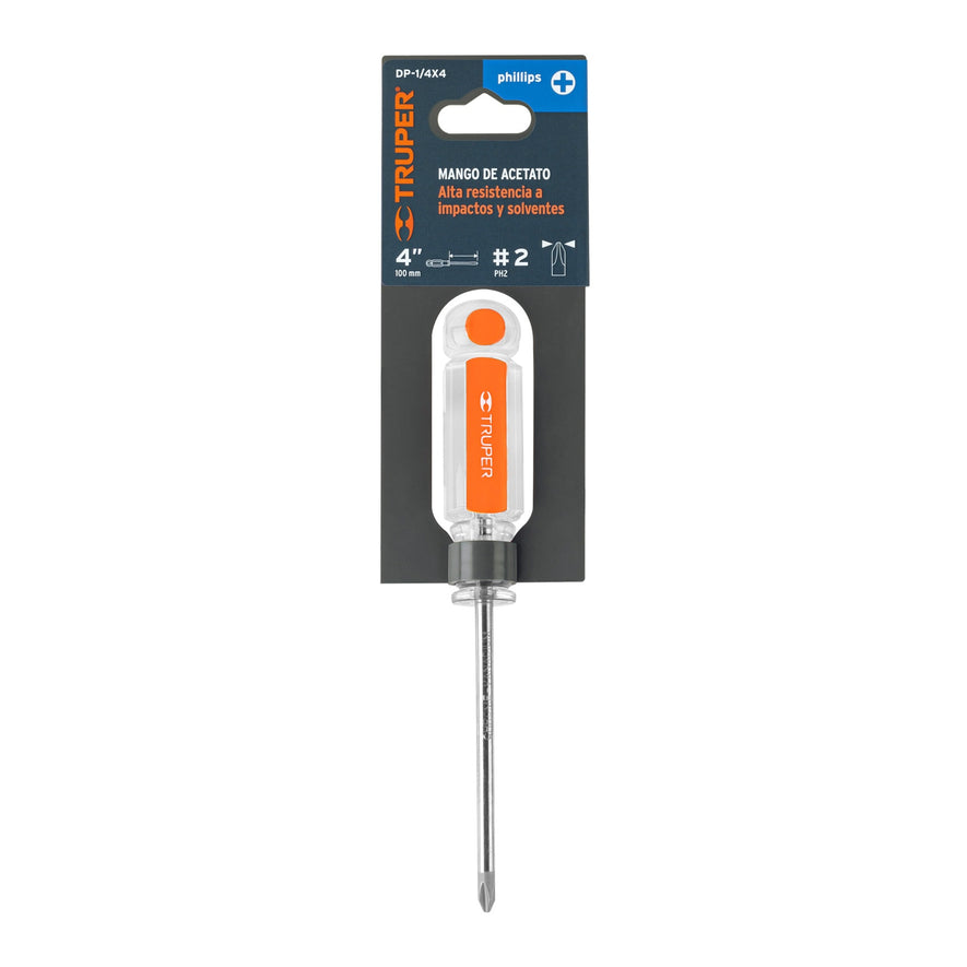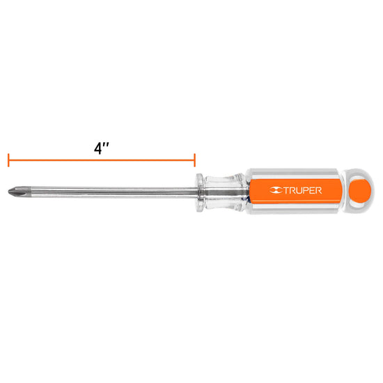 Desarmador de cruz 1/4' x 4' mango de acetato, Truper Caja con 6, 14074