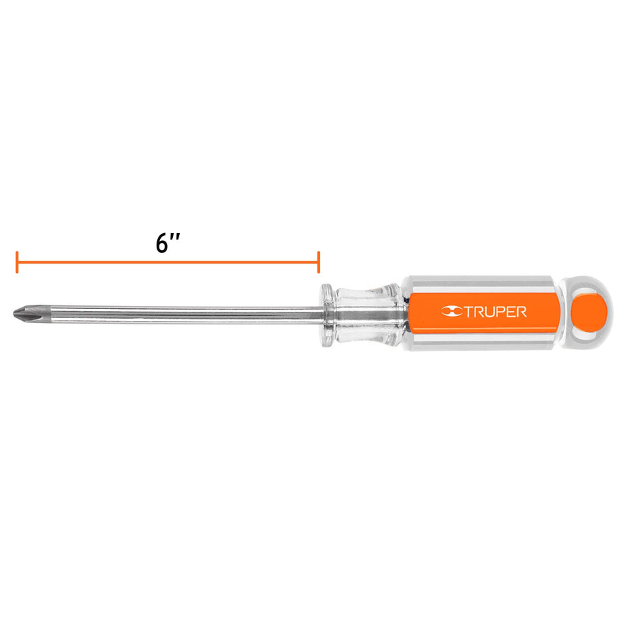 Desarmador de cruz 5/16' x 6' mango de acetato, Truper Caja con 6, 14083