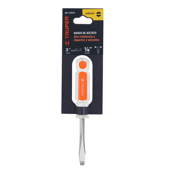 Desarmador plano 1/4 x 3' barra cuadrada mango acetato Caja con 6, 14089