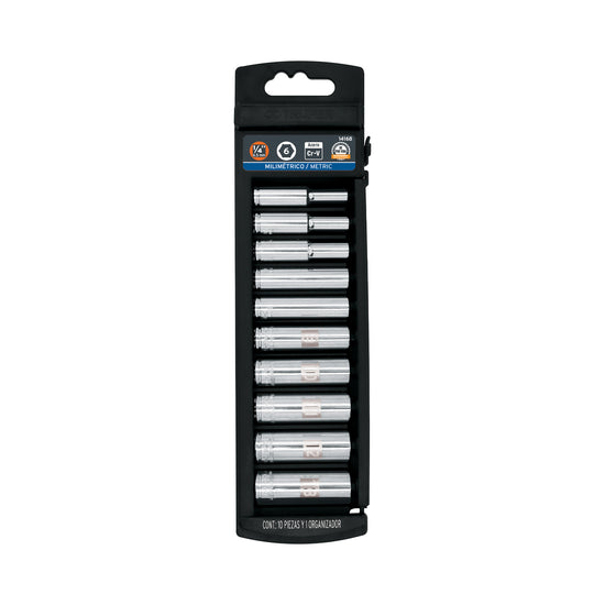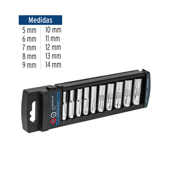 Juego de 10 dados largos cuadro 1/4' mm, Truper Caja con 4, 14168