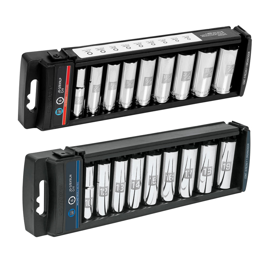 Juego de 9 dados largos cuadro 3/8' std, Truper, 14172