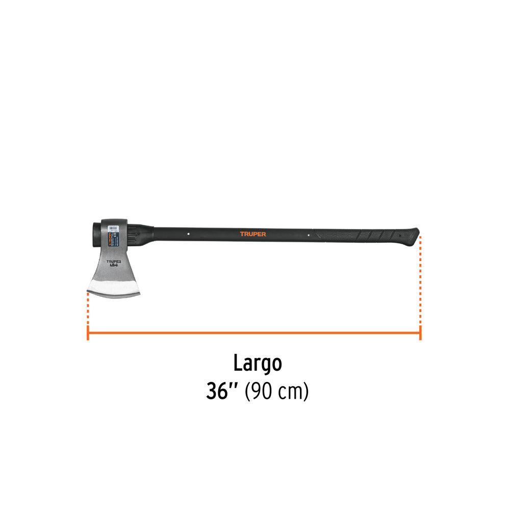 Hacha labor entera 4 lb, mango de fibra de vidrio 36',TRUPER Caja con 2, 14982