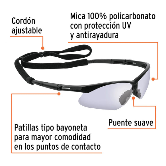 Lentes seguridad espejo azul c/cordón ajustable, Sport Caja con 6, 15184Lentes seguridad espejo azul c/cordón ajustable, Sport Caja con 6, 15184