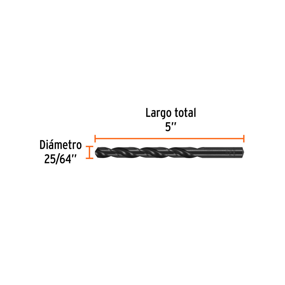 Broca HSS 25/64' Trublack para metal, Truper Caja con 5, 15338