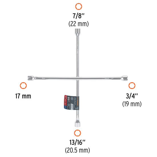 Llave de cruz 20' pulida y cromada, TRUPER Caja con 3, 15481