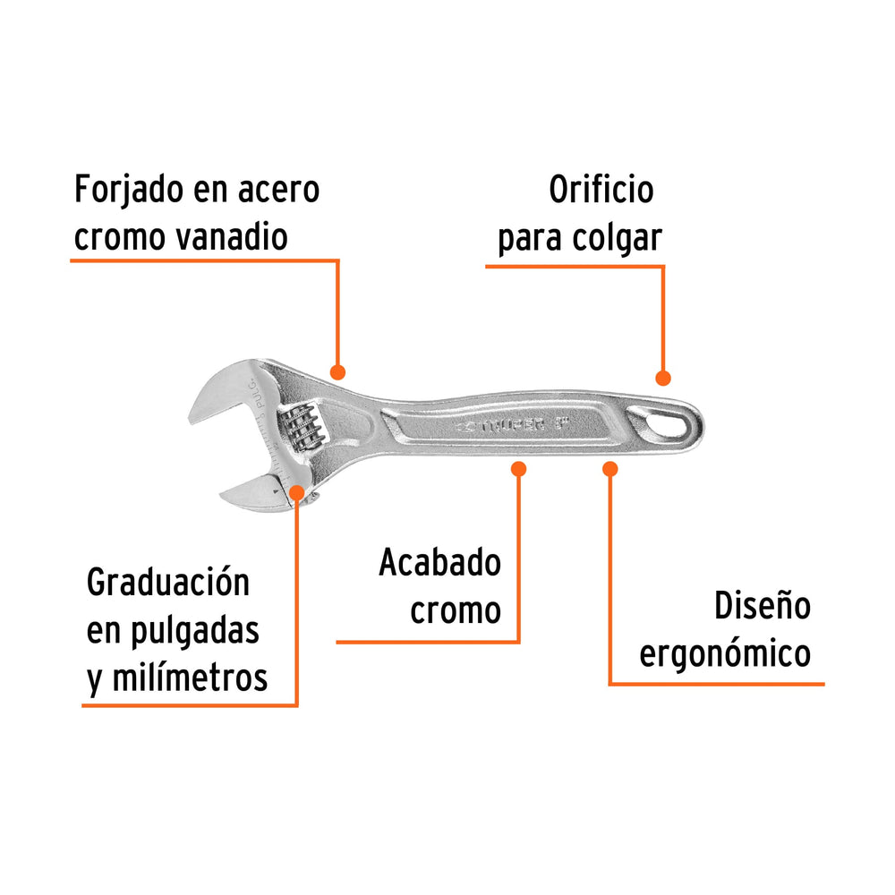 Llave ajustable (perico) 8' profesional cromada, Expert Caja con 6, 15506